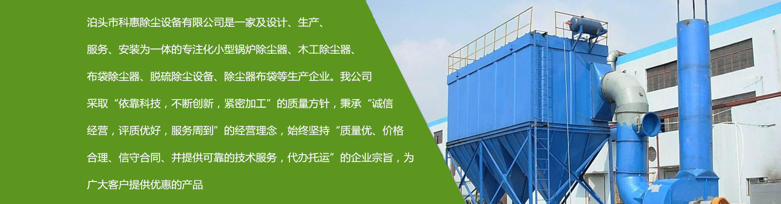 泊頭市科惠除塵設備有限公司專門生產布袋除塵器,脈沖布袋除塵器,小型布袋除塵器,鍋爐布袋除塵器,除塵布袋,布袋除塵器廠家及各種配件,質量可靠,廠家直銷!